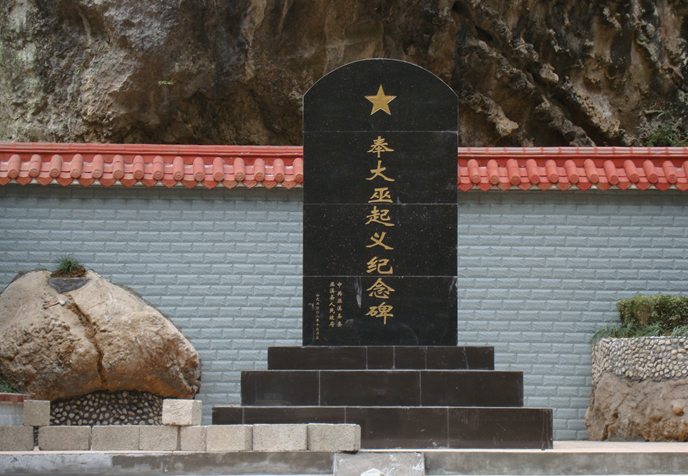 川东游击队起义纪念园,又称奉大巫起义纪念园,位于巫溪县下堡镇宁桥村,距巫溪县城25公里,占地0.5亩,?;し段?.5平方公里。纪念园被三面纪念墙环抱,正中为黑色大理石纪念碑,碑上刻有红五星和“奉大巫起义纪念碑”镀金大字,纪念墙上分别是“奉大巫起义简介”和“奉大巫起义英名录”。