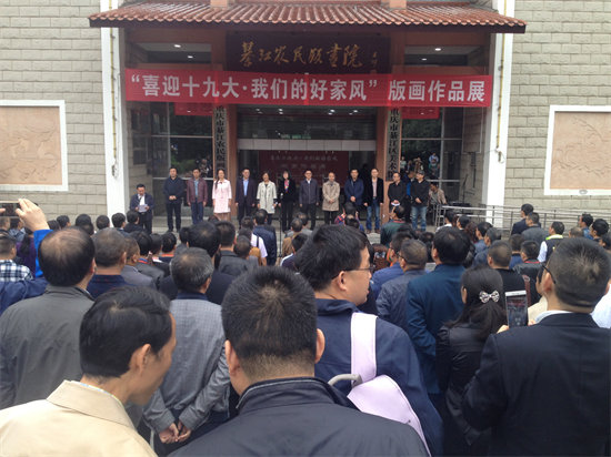 10月13日上午,綦江区“喜迎十九大·我们的好家风”版画作品展在綦江农民版画院正式启动。以李大钊、方志敏、邓小平、杨尚昆等中共党史人物和邹进贤、王良、王奇岳等綦江籍党史人物家风故事和烈士遗作创作的10余幅版画作品入选此次画展,这也是綦江区党史学习教育的一次有益探索和实践。